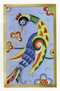 Oiseau des Iles de 1984 en émail champlevé sur plaque de cuivre doré